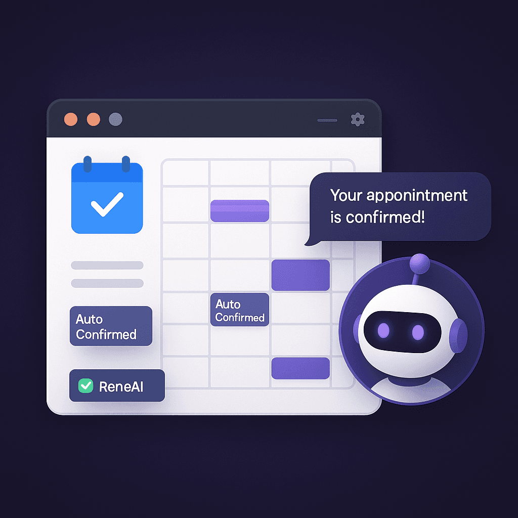 ReneAI manages every step of the scheduling process — from bookings and confirmations to reschedules and reminders. It works 24/7 to keep your calendar full and your operations effortless.